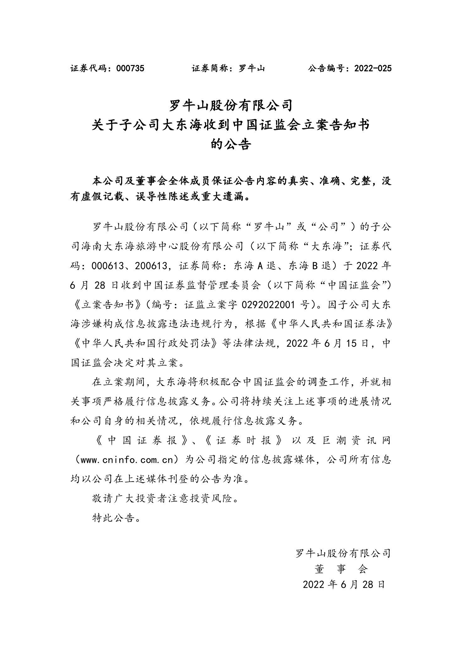 行政处罚部门:中国证监会