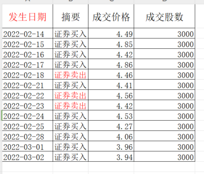 首先将买卖记录整理为一个excel表格,注意标题是发生日期、摘要、成交股数和成交价格。摘要是证券买入、证券卖出、红利入账和红股入账。主要是这几个栏目,其他如佣金、印花税也可以主张,但是金额相对比较小,计算过程也可以先忽略。