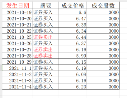 首先将买卖记录整理为一个excel表格,注意标题是发生日期、摘要、成交股数和成交价格。摘要是证券买入、证券卖出、红利入账和红股入账。主要是这几个栏目,其他如佣金、印花税也可以主张,但是金额相对比较小,计算过程也可以先忽略。