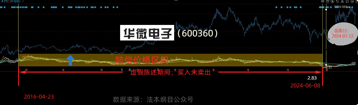 第一根黄线和第二根黄线之间为买入区间(虚假陈述影响区间),第二根和第三根黄线之间为卖出或持有区间(基准价格计算区间)。从K线图可以看出大致的亏损买入期间。