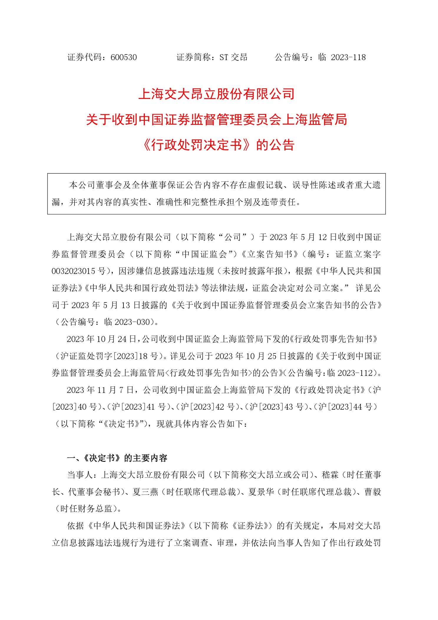 行政处罚部门:中国证监会