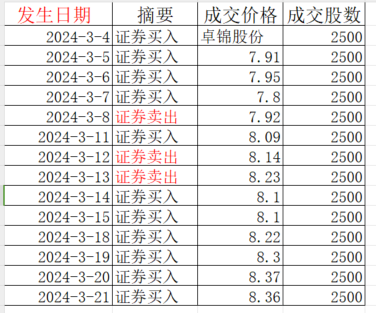 首先将买卖记录整理为一个excel表格,注意标题是发生日期、摘要、成交股数和成交价格。摘要是证券买入、证券卖出、红利入账和红股入账。主要是这几个栏目,其他如佣金、印花税也可以主张,但是金额相对比较小,计算过程也可以先忽略。