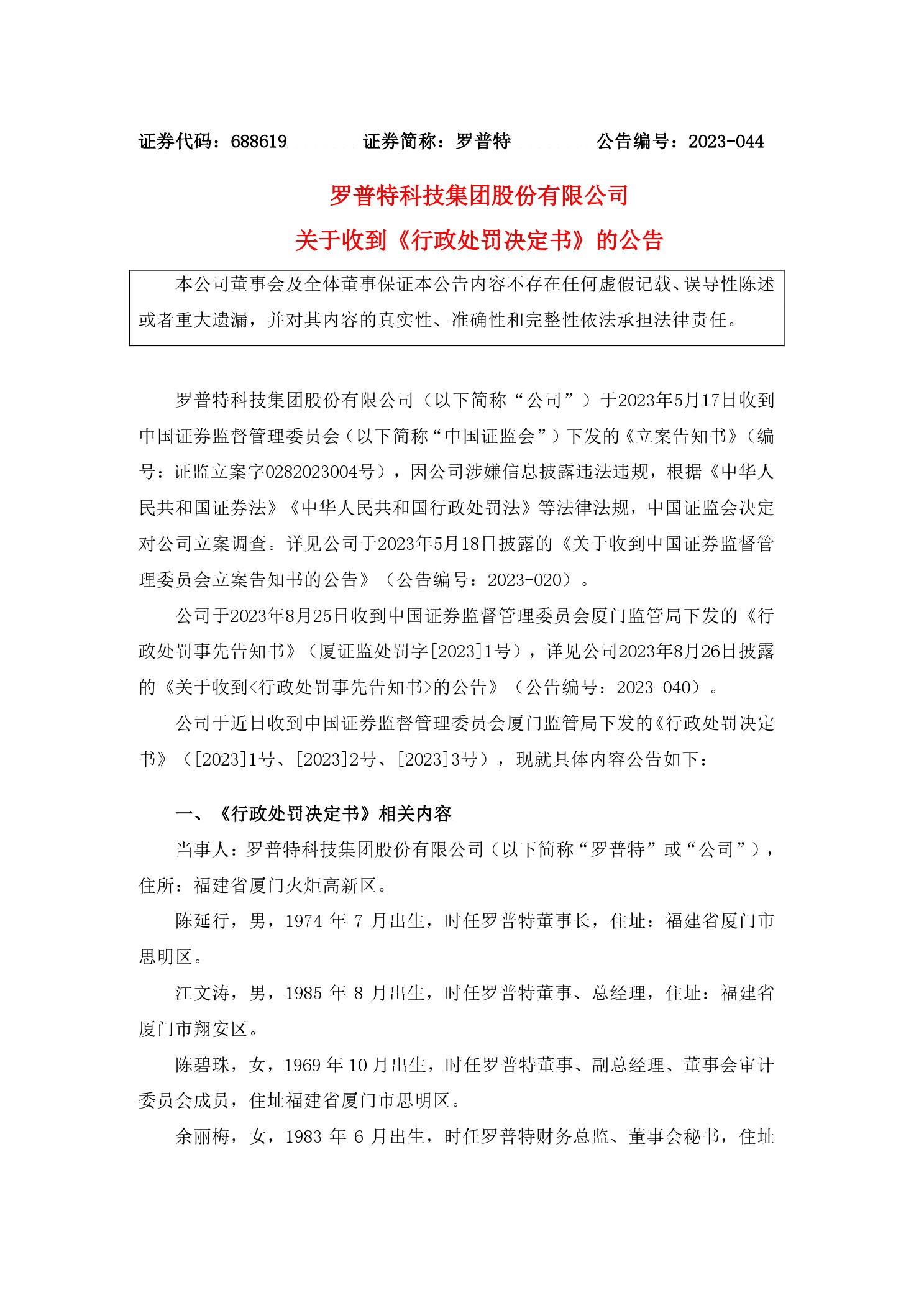 行政处罚部门:中国证监会